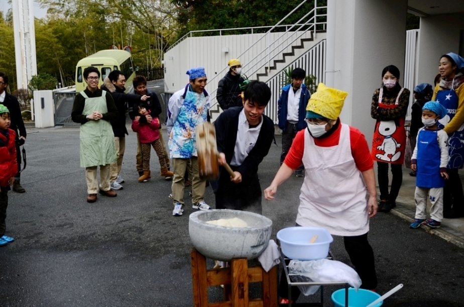 毎年、おもちつきの日はなぜか雪が降ることが多く、「さむい~」と言いながら準備をしていましたが、今年は無事?雪は降りませんでした でもやっぱり寒かったですけど…
